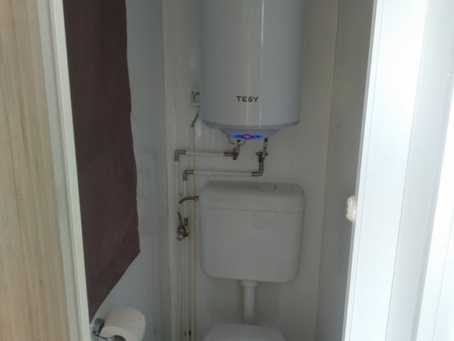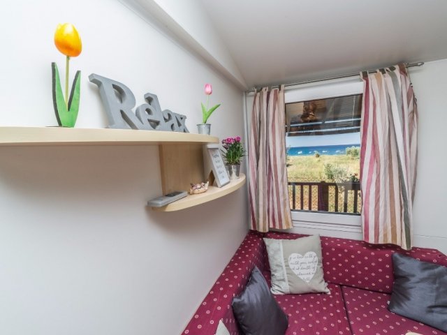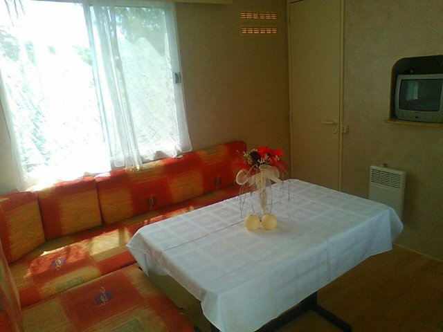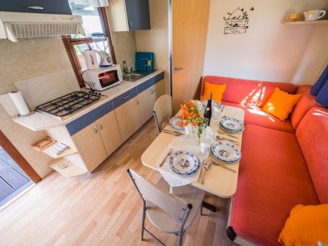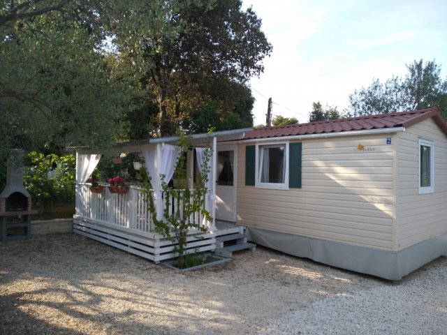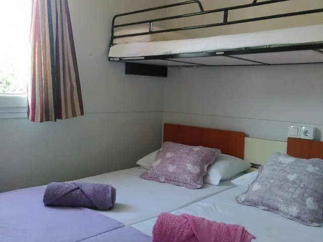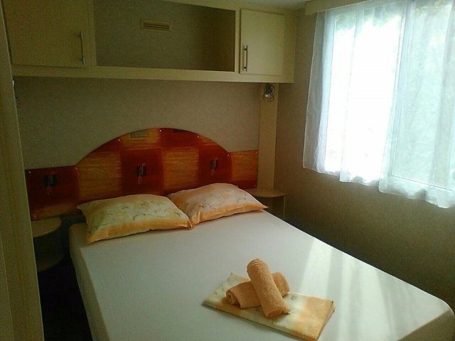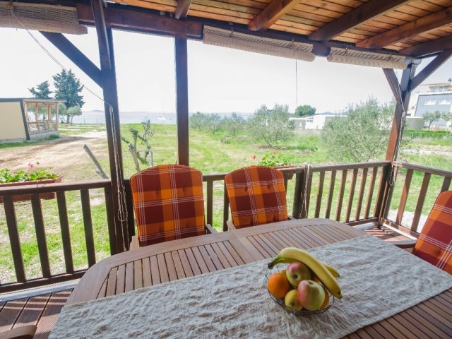 Mobilna kućica u Pakoštanima blizu mora je pogodna za boravak do 5 osoba. Sastoji se od dvije spavaće sobe, dnevnog boravka sa kuhinjom, kupaonice i terasa
